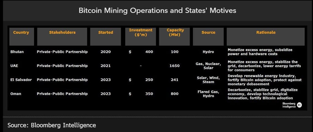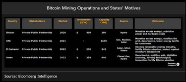 These nation states possess the ability to monetize stranded and excess energy (predominantly renewable and nuclear sources). El Salvador, for example, uses geothermal energy captured from its volcanoes to mine bitcoin.