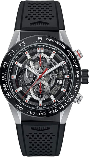 TAG Heuer Carrera Men's Watch Skeleton Dial w/ Black Rubber Strap CAR201V.FT6046